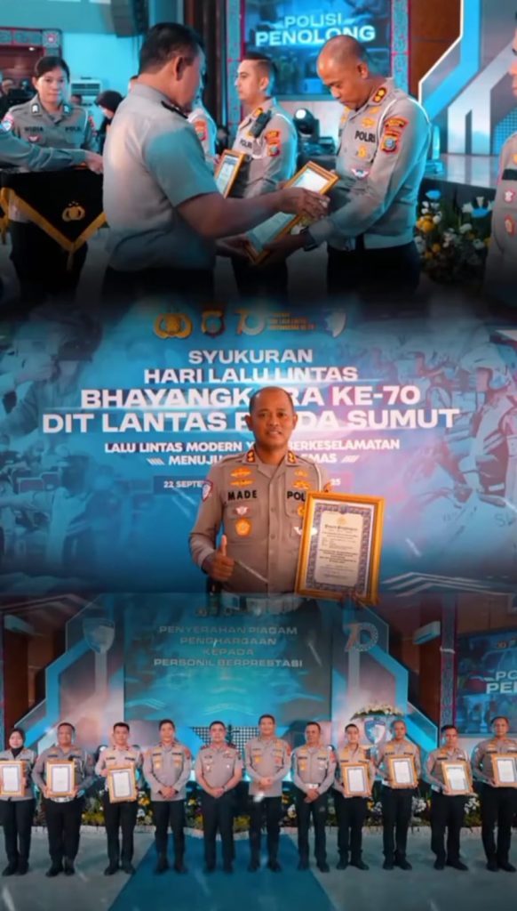 Dalam acara syukuran yang digelar Ditlantas Polda Sumut, sejumlah anggota kepolisian turut menerima penghargaan atas dedikasi dan kontribusi mereka dalam meningkatkan kinerja lalu lintas di wilayah Sumatera Utara. AKBP I Made Parwita, selaku Kepala Satlantas Polrestabes Medan, mendapat apresiasi khusus karena berhasil mencapai target PNBP dan menyelesaikan pelaporan tepat waktu. Capaian ini menjadi indikator utama efektivitas pengelolaan sekaligus pelayanan publik di bidang lalu lintas.