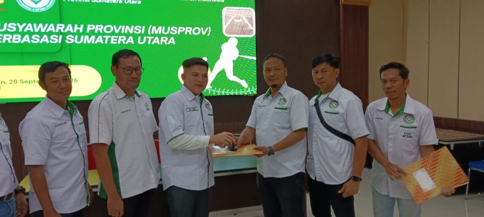 Medan | SuaraPrananta.com – M. Faisal B. IRKH, MH resmi menjadi Ketua Persatuan Baseball dan Softball Seluruh Indonesia (Perbasasi) Sumatera Utara setelah terpilih tanpa lawan dalam Musyawarah Provinsi (Musprov) 2025 yang digelar di Aula Cemara, Gedung BPSDM Sumut, Minggu (28/9/2025).